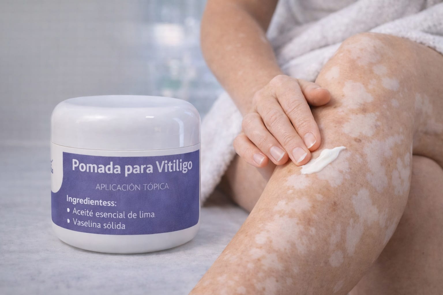 La fórmula magistral Pomada para Vitíligo es un coadyuvante en el tratamiento del vitíligo, ayudando a pigmentar de manera paulatina las áreas afectadas, gracias a la esencia de lima que pigmenta de una forma natural manchas causadas por el vitiligo.